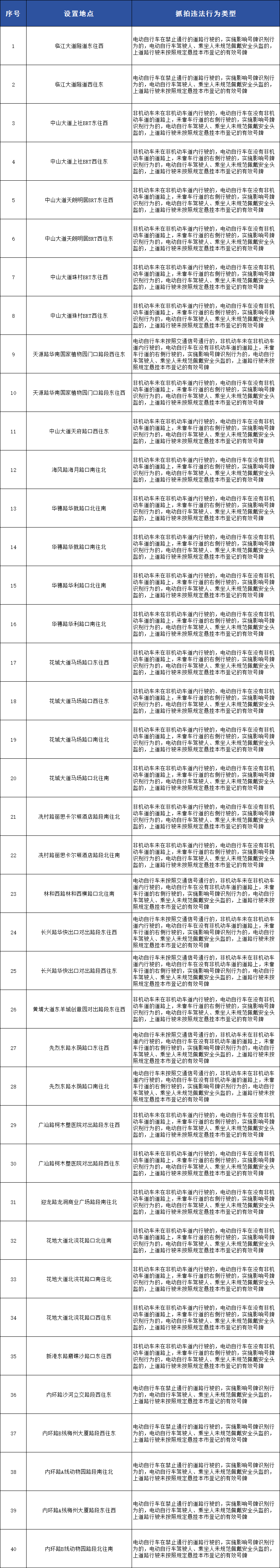 据了解,广州交警在“临江大道隧道东往西”等路段新增电动自行车交通违法行为抓拍取证点位40个。此外,在已经公示的电动自行车交通违法行为取证执法点位中,广州交警对“大观南路广园快速路跨线桥上桥位北往南”等168个点位新增抓拍违法行为。